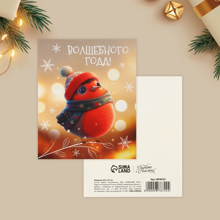 Открытка-мини «Волшебного года!», снегирь 10.7 х 8.8 см — Характеристики