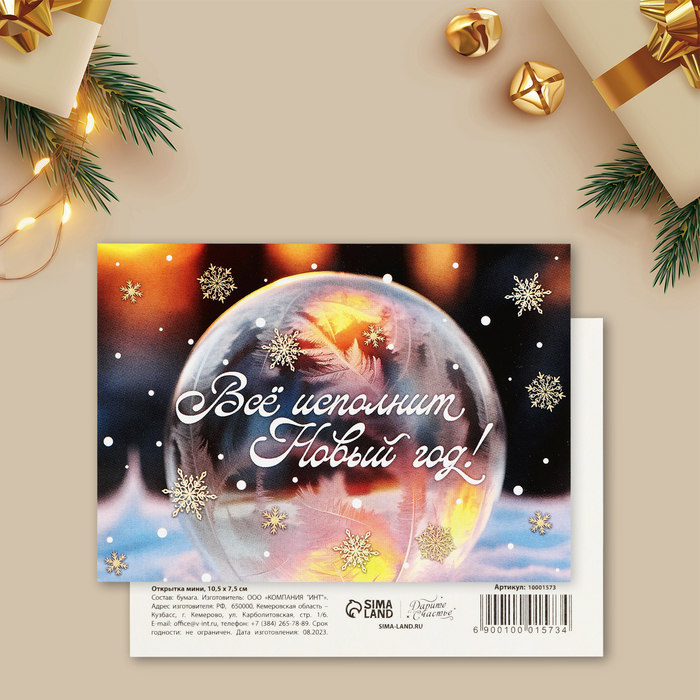 Открытка-мини «Всё исполнит Новый год!», 10.5×7.5 см — Характеристики