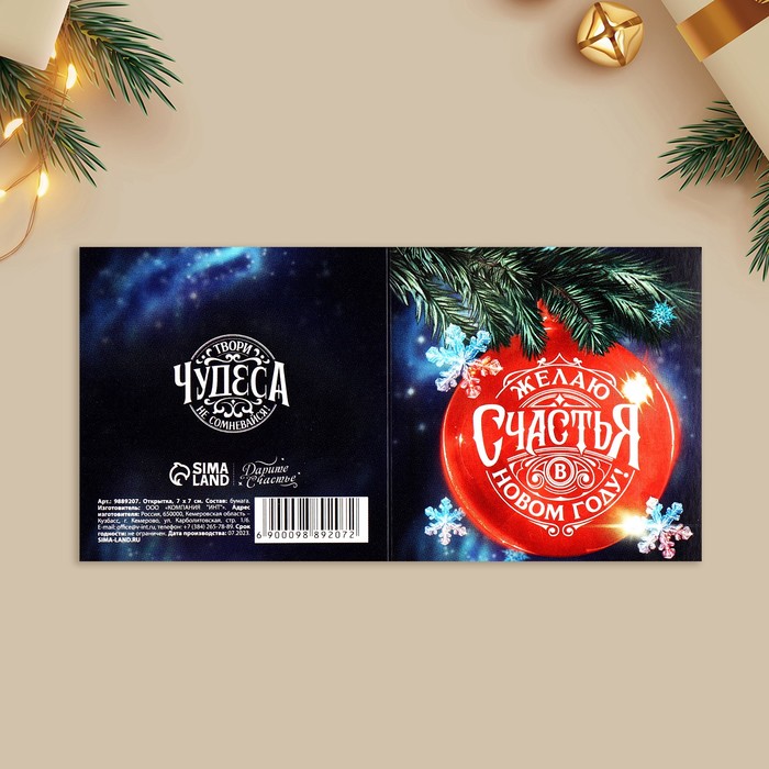 Открытка-мини «Желаю счастья в Новом году!», 7×7 см — Характеристики