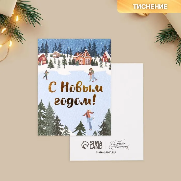 Открытка на акварельном картоне «С Новым годом!», 8×6 см — Характеристики