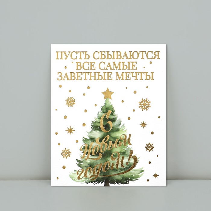 Открытка на акварельном картоне «С Новым годом», тиснение, 10.5 х 8.5 см — Характеристики
