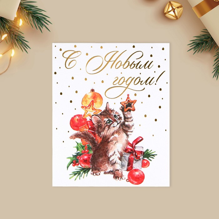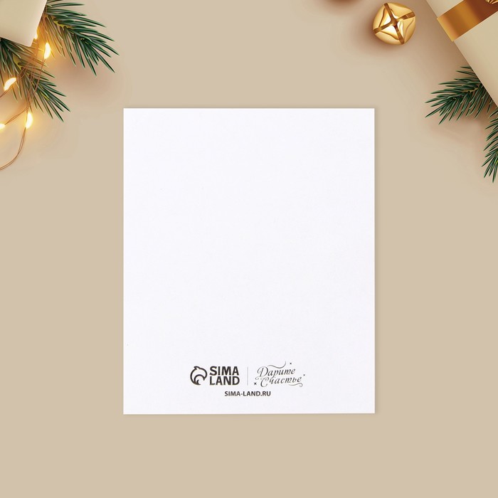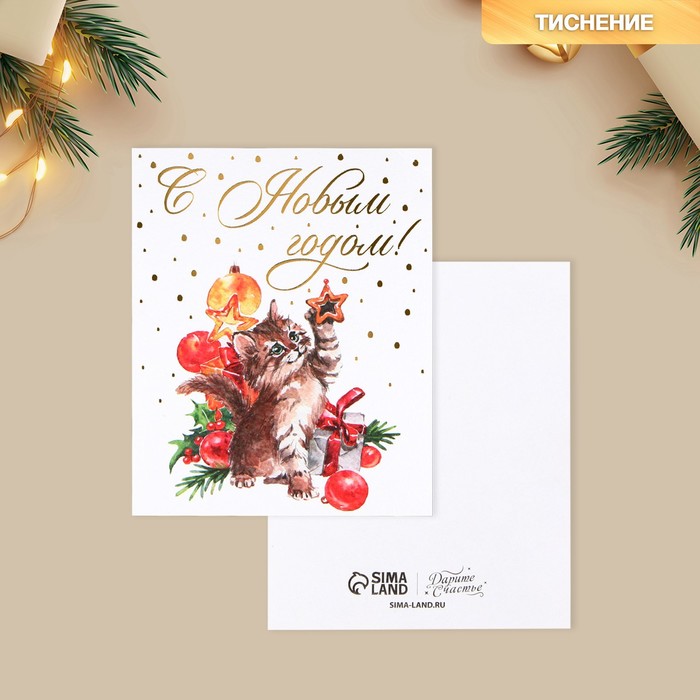 Открытка на акварельном картоне «С Новым годом», тиснение, 10.7×8.8 см — Характеристики