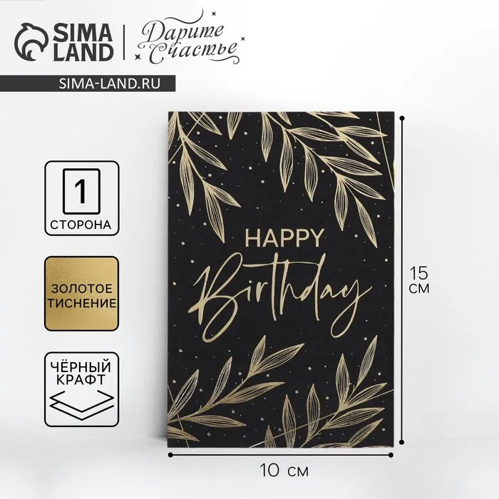 Открытка на черном крафте Happy Birthday, 10×15 см — Характеристики