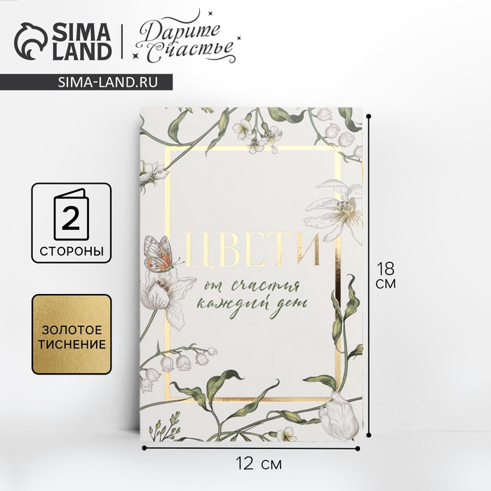 Открытка «Цвети от счастья», цветы, тиснение, 18 х 12 см
