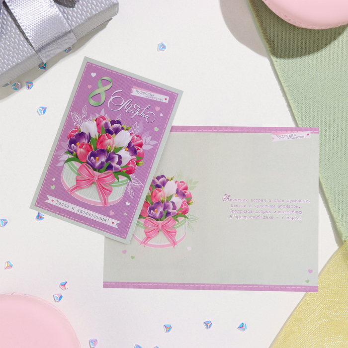Открытка «8 Марта! Тепла и вдохновения!», 12.5×19.5 см