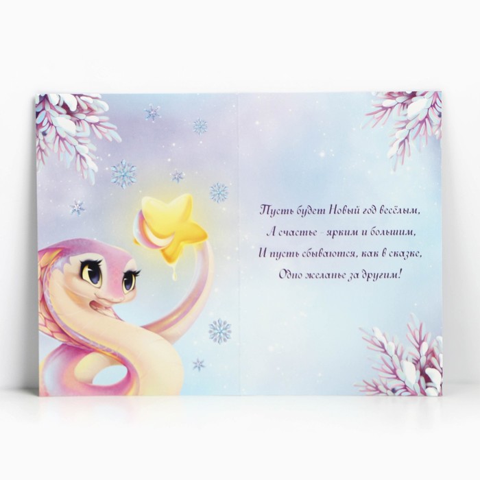 Открытка «Новый год 2025», змея, тиснение, 12 х 18 см — Характеристики