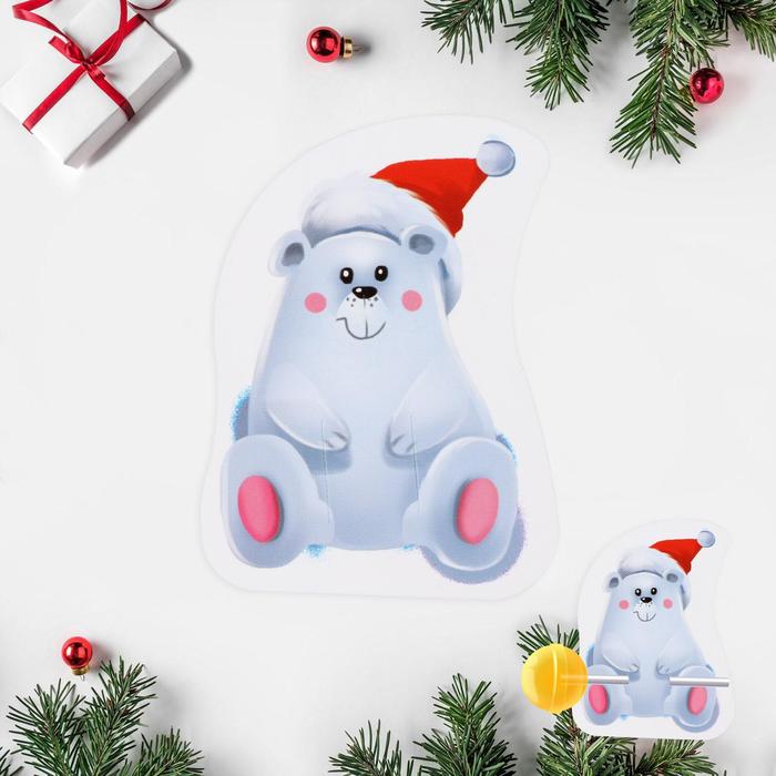 Открытка под конфету «С Новым годом» белый мишка, 5 х 8 см — Характеристики