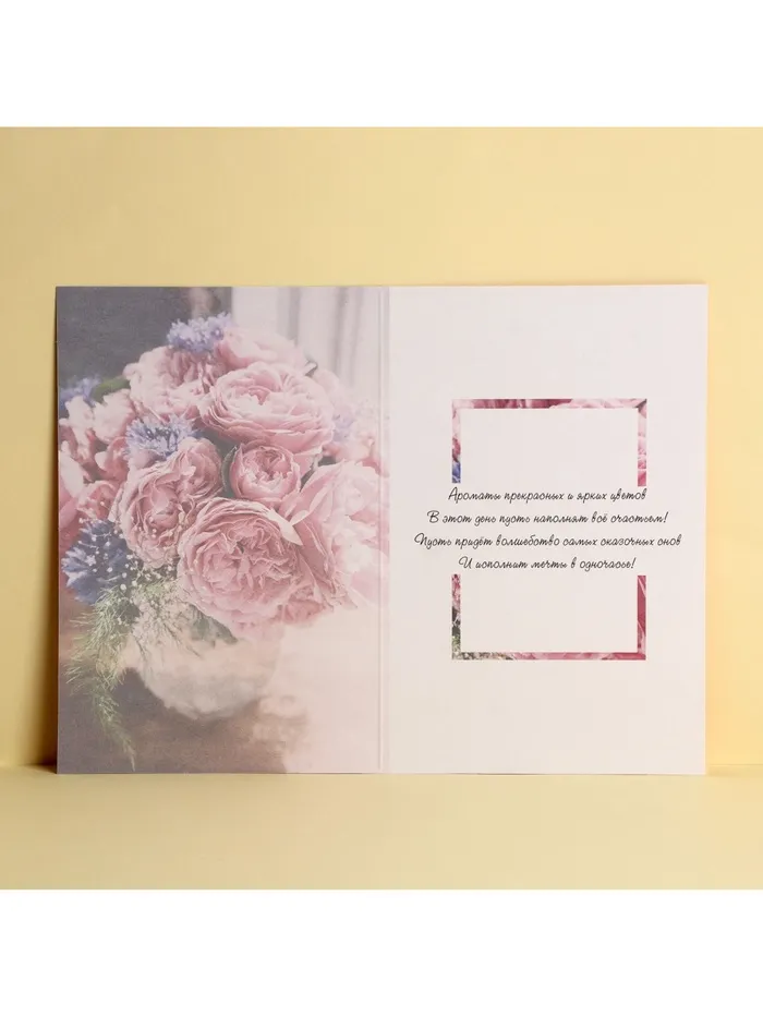 Открытка «Поздравляю», букет пионов, 12 × 18 см — Характеристики