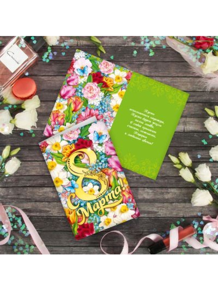 Атмосферу праздника создают детали: свечи, цветы, бокалы, воздушные шары и поздравительные открытки — яркие и весёлые, романтичные и нежные, милые и трогательные. Расскажите о своих чувствах дорогому для вас человеку, поделитесь радостью с близкими и друзьями. Открытка «С 8 Марта», 12×18 см с креативным дизайном вам в этом поможет.