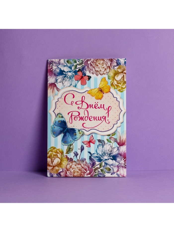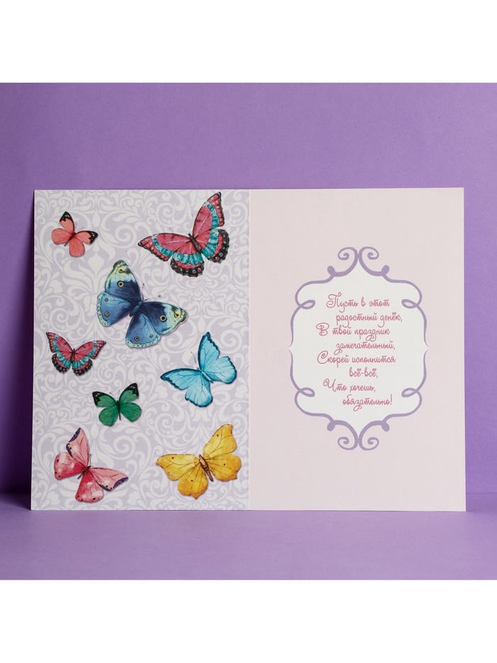 Атмосферу праздника создают детали: свечи, цветы, бокалы, воздушные шары и поздравительные открытки — яркие и весёлые, романтичные и нежные, милые и трогательные. Расскажите о своих чувствах дорогому для вас человеку, поделитесь радостью с близкими и друзьями. Открытка «С Днем Рождения», бабочки, 12 × 18 см с креативным дизайном вам в этом поможет.
