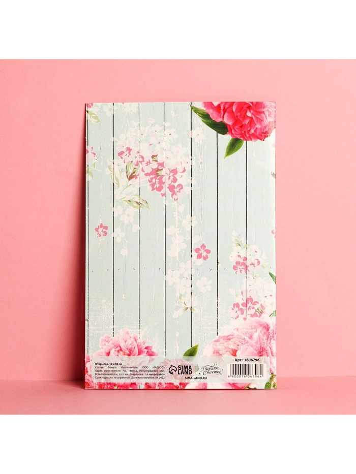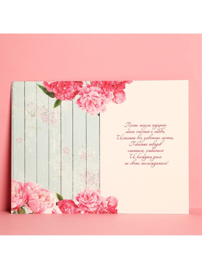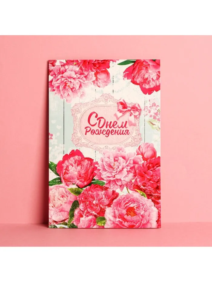 Открытка «С Днем Рождения», розовые пионы, 12 × 18 см — Характеристики