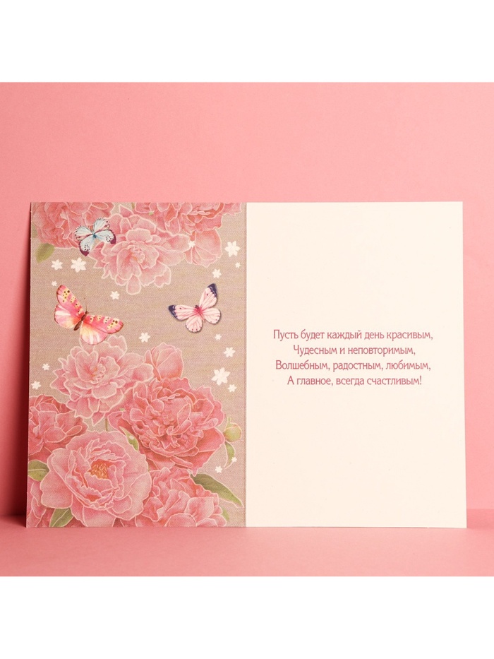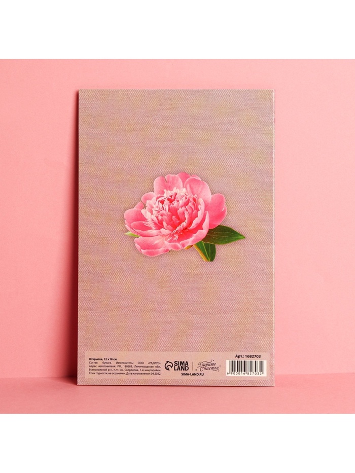 Открытка «С Днем Рождения», розовые пионы, 12×18 см — Характеристики