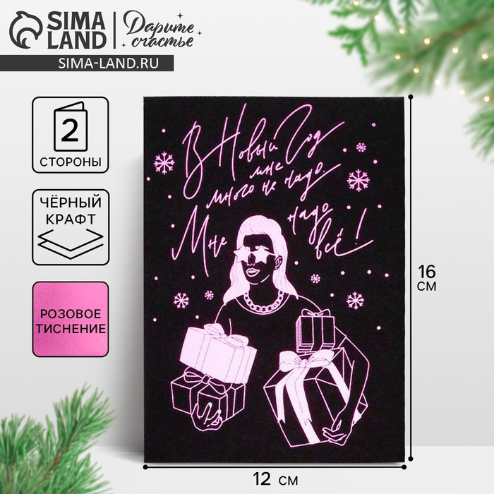 Открытка с новым годом, на черном крафте «Надо все», 12 х 16 см