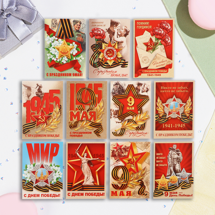 Набор мини-открыток "9 Мая" 33 шт, 7,5 х 10,5 см