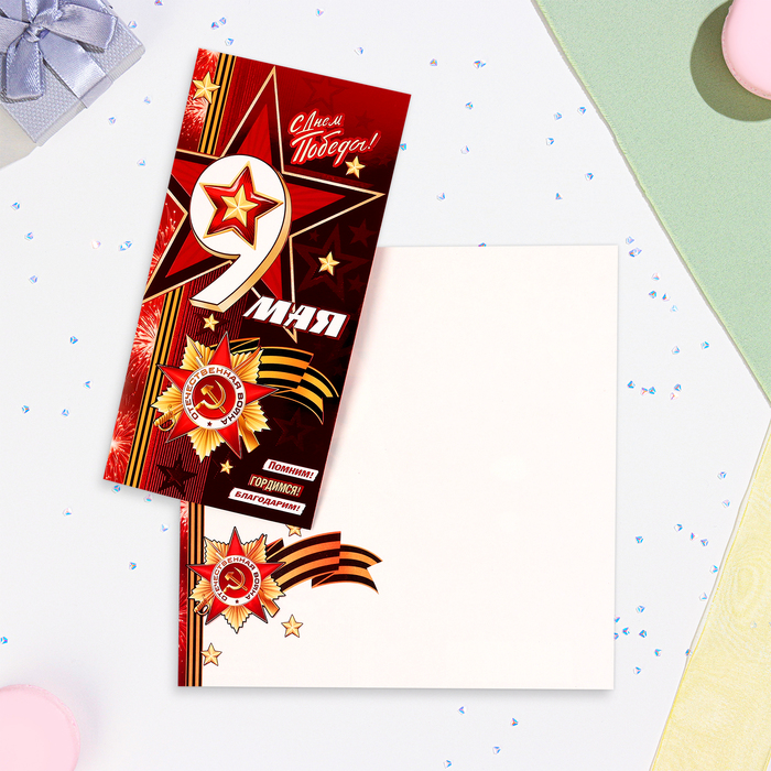 Открытка «С Днём Победы! 9 Мая» тиснение, конгрев, 12.5×19.5 см — Характеристики