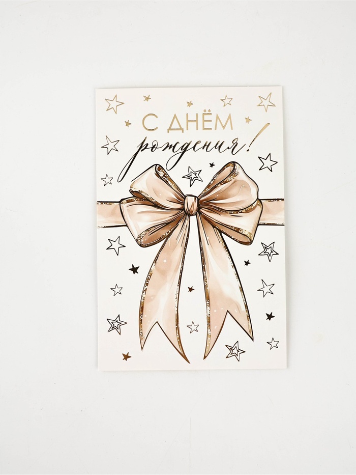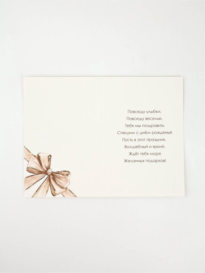 Открытка «С Днём рождения», бант, тиснение, 12×18 см — Характеристики
