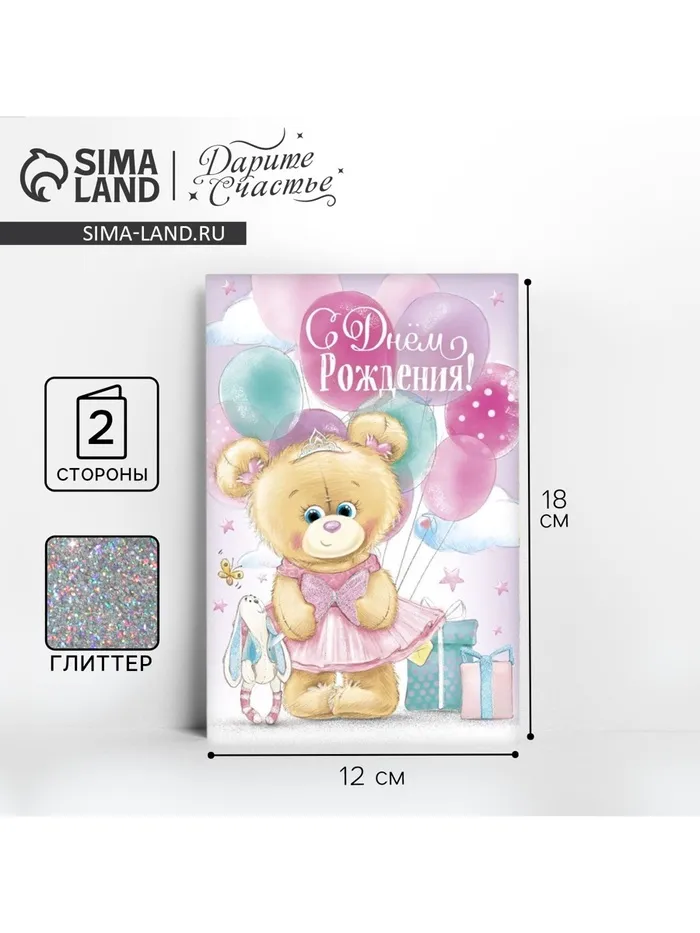 Открытка «С днём Рождения», глиттер 12×18 см — Характеристики