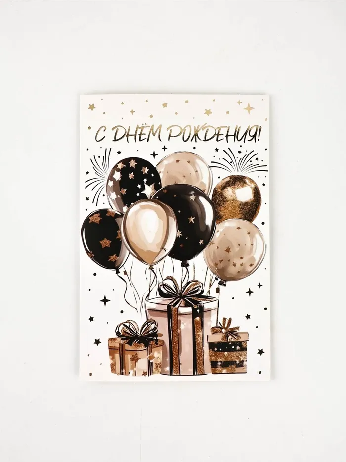 Открытка «С Днём рождения», шары, тиснение, 12×18 см — Характеристики