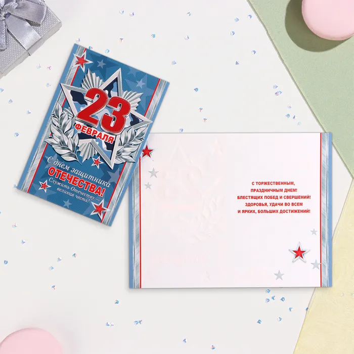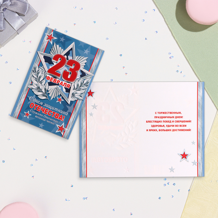 Открытка «С Днём защитника Отечества!» конгрев, тиснение, 12.5×19.4 см — Характеристики