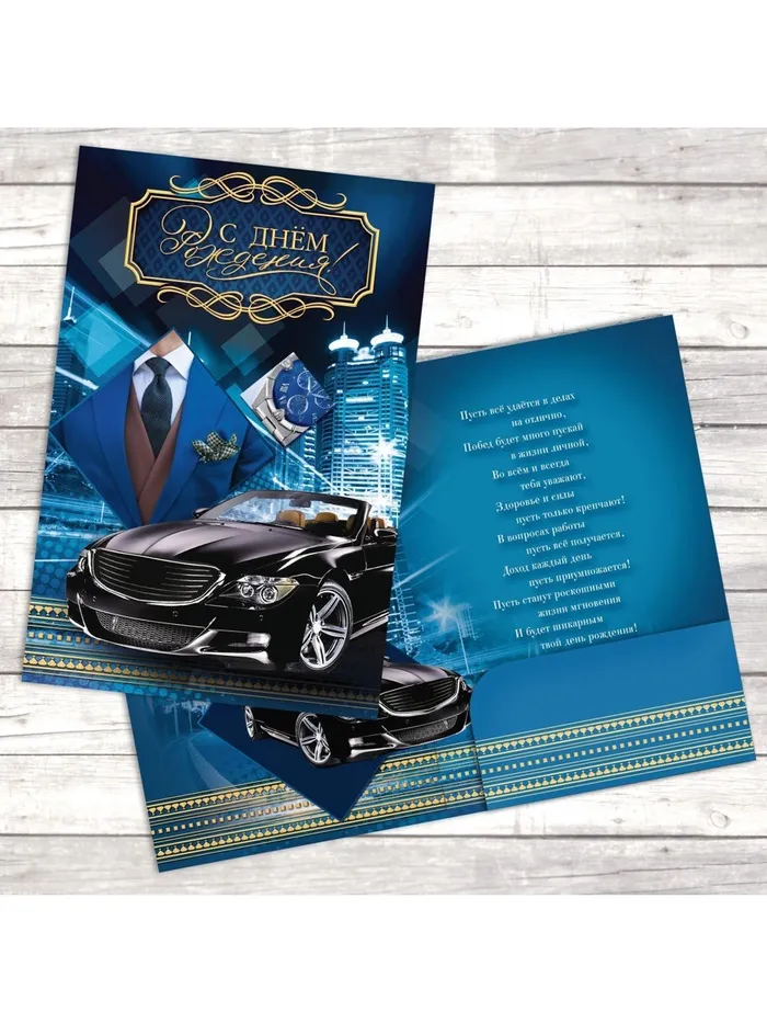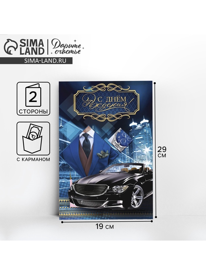 Открытка с карманом для денег «С днём рождения, Мужская», 19 х 29 см — Характеристики