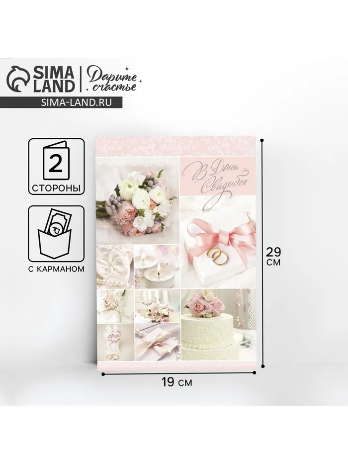 Открытка с карманом для денег «В день свадьбы», 19 х 29 см — Характеристики