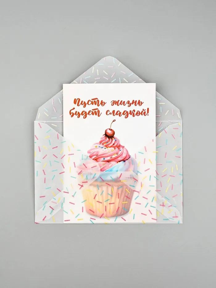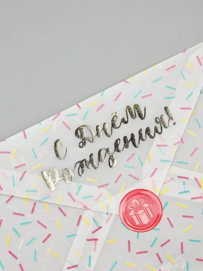 Открытка с конвертом и наклейкой «С днём рождения», тиснение, 11 х 16 см — Характеристики