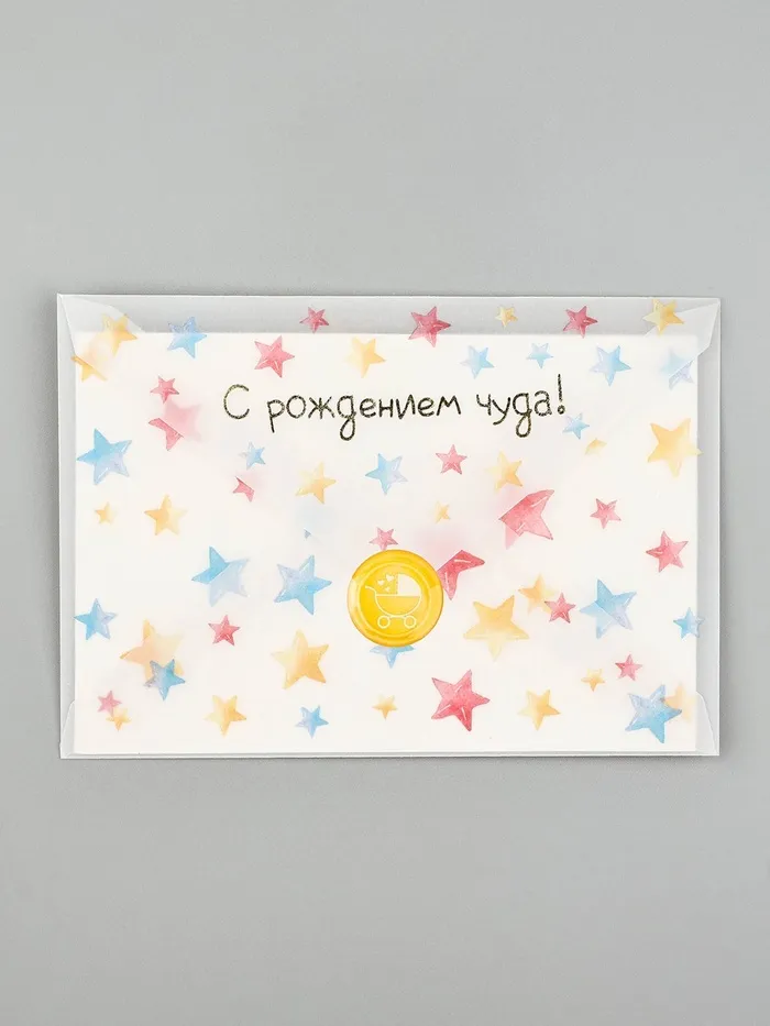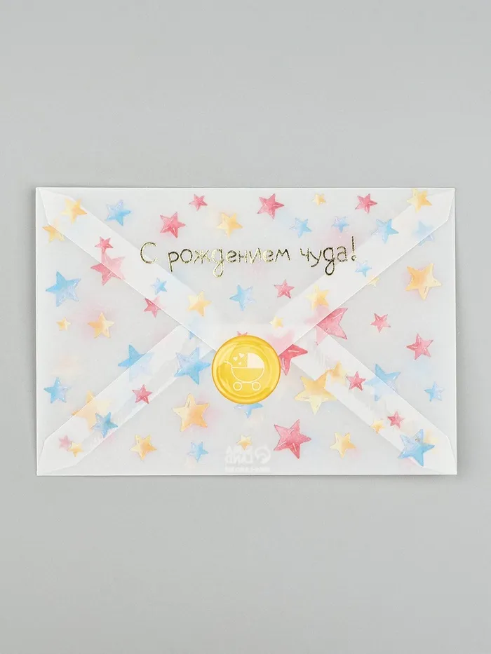 Открытка с конвертом и наклейкой «С рождением!», тиснение, 11 х 16 см — Характеристики