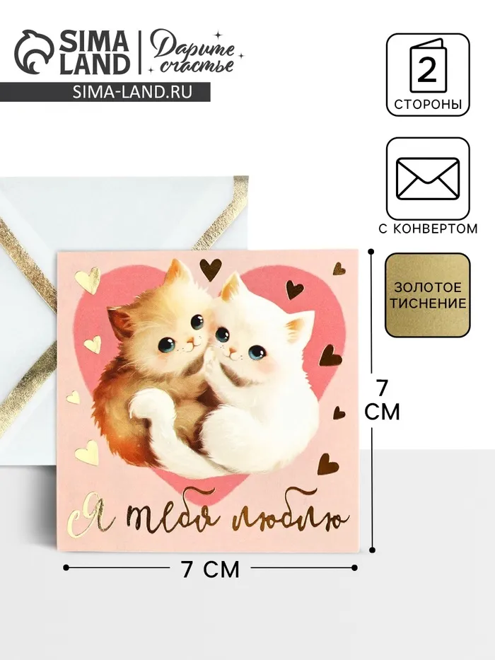 Открытка с конвертом «Я тебя люблю», тиснение, 7 х 7 см — Характеристики