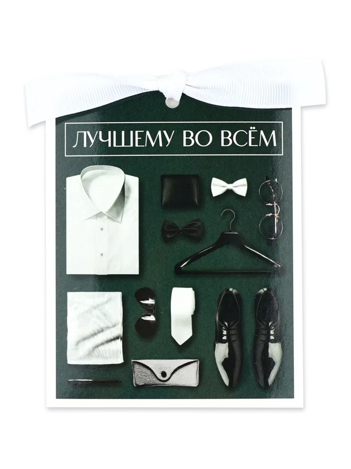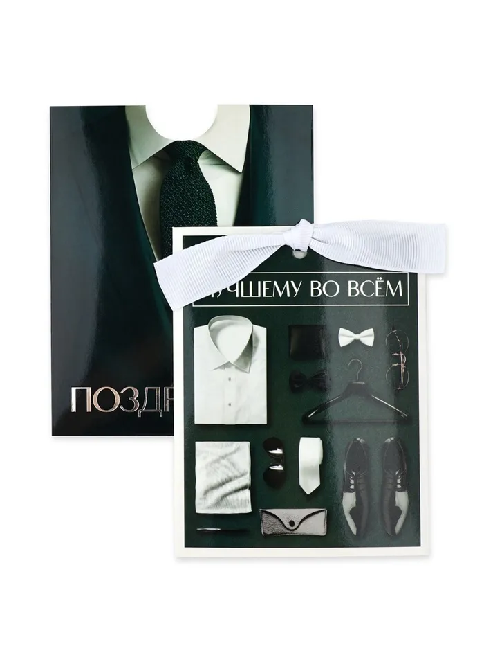 Открытка с конвертом на ленте «Лучшему во всём», тиснение, 10×12.5 см — Характеристики