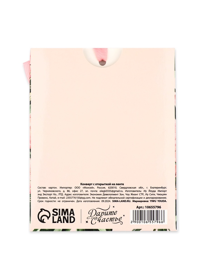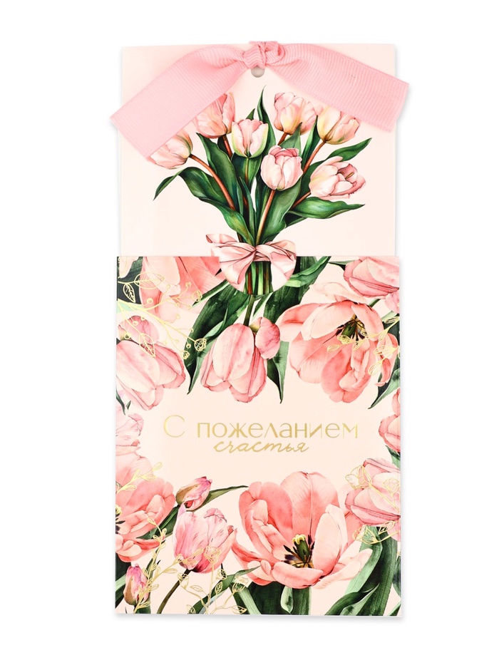 Открытка с конвертом на ленте «С пожеланием счастья», тиснение, 10×12.5 см — Характеристики
