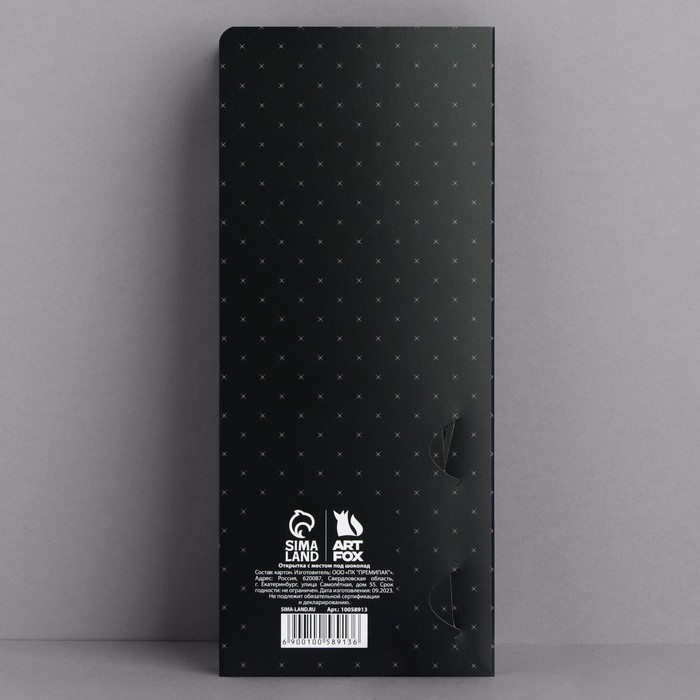 Открытка с местом под шоколадку, станет прекрасным подарком к празднику. Яркий дизайн, удобный формат и приятные эмоции обеспечены своему получателю.
