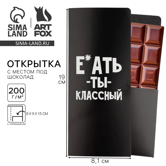 Открытка с местом под шоколадку, станет прекрасным подарком к празднику. Яркий дизайн, удобный формат и приятные эмоции обеспечены своему получателю.