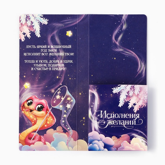 Открытка с местом для шоколадки «Новый год: Мечты обязательно сбудутся! Символ года» — Характеристики