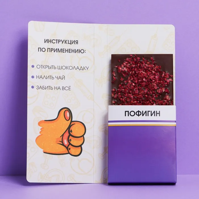 Открытка с местом для шоколадки «Пофигин» — Характеристики