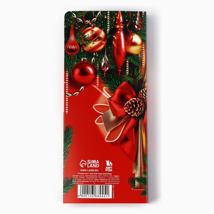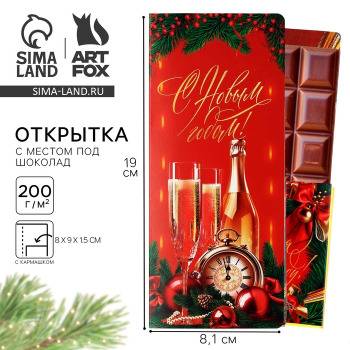 Открытка с местом для шоколадки «Счастья в Новом году! Шампанское с бокалами» — Характеристики