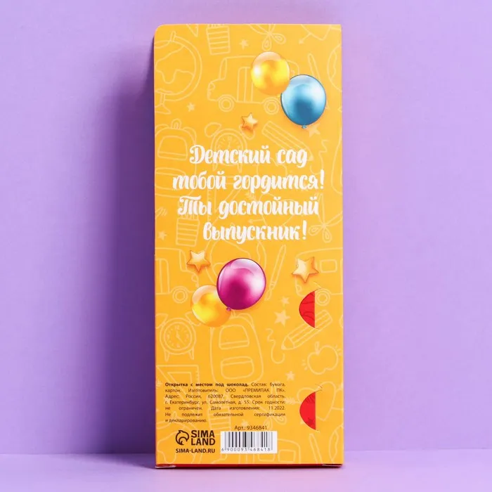 Открытка с местом для шоколадки «Выпускник детского сада» — Характеристики