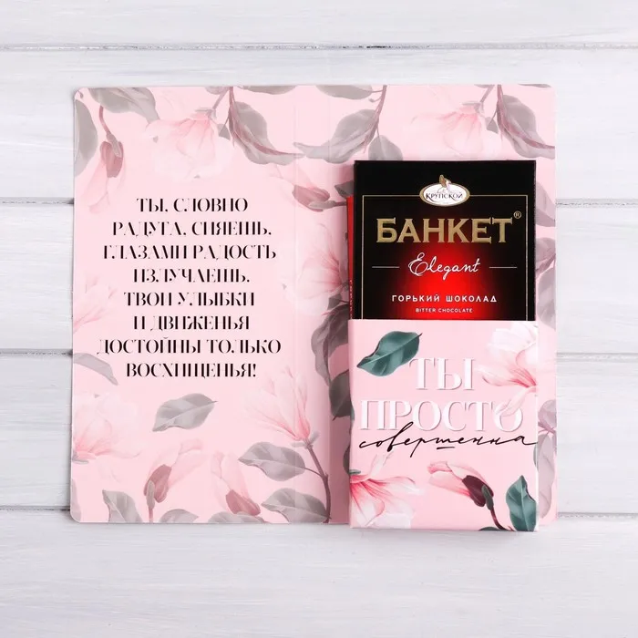 Открытка с местом под шоколадку «Будь совершенна всегда» — Характеристики
