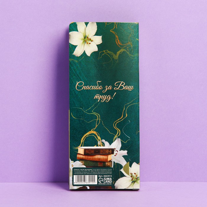 Открытка с местом под шоколадку «Золотому учителю» — Характеристики