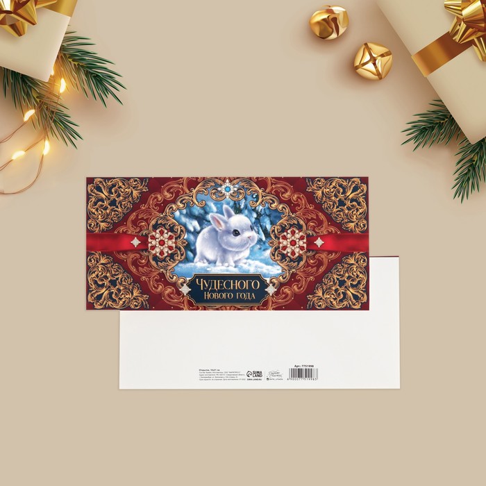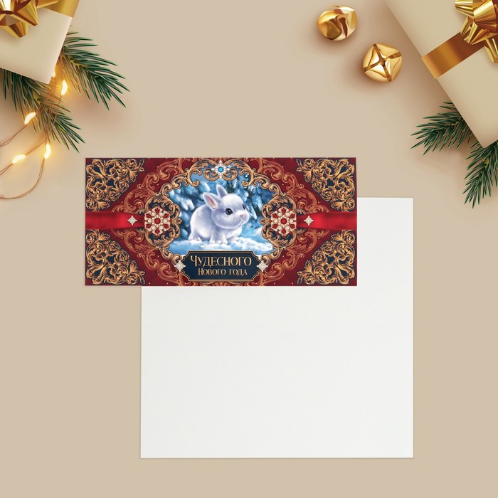Открытка с новым годом евро «Новогодний зайчик», 10 х 21 см