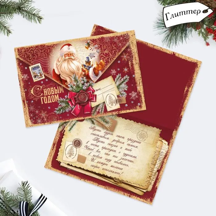 Открытка «С Новым годом!» глиттер, письмо 12×18 см — Характеристики