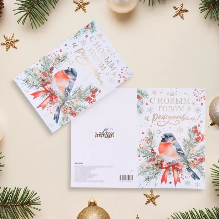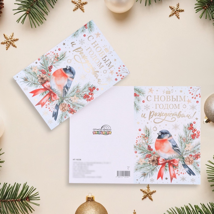 Открытка «С Новым Годом и Рождеством!» тиснение, 18×12 см — Характеристики