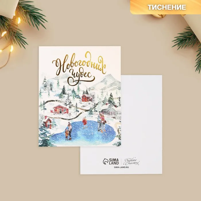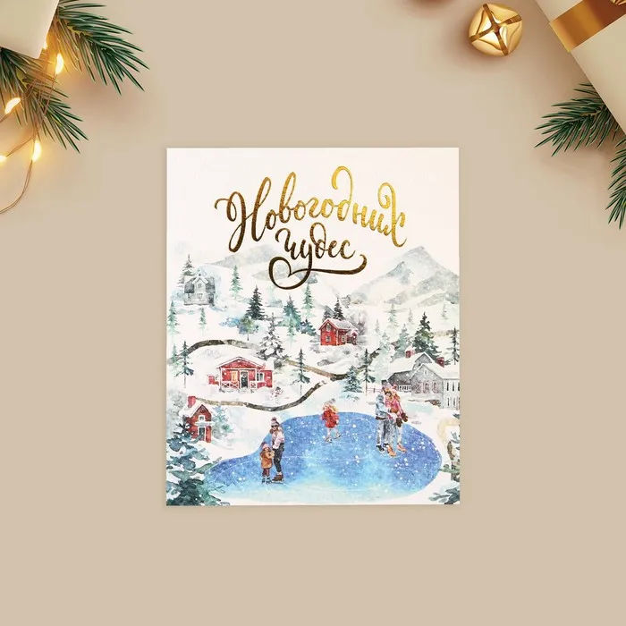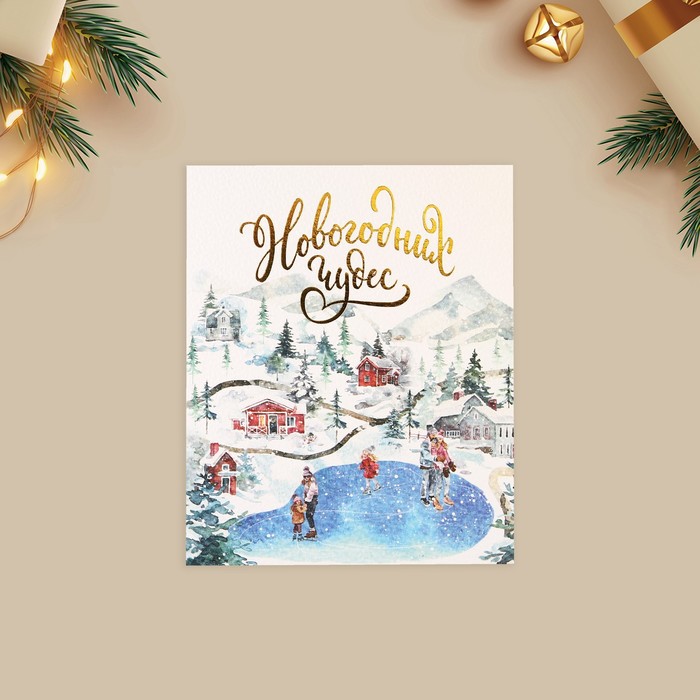 Открытка с новым годом на акварельном картоне «Чудеса», 10.7 х 8.8 см — Характеристики