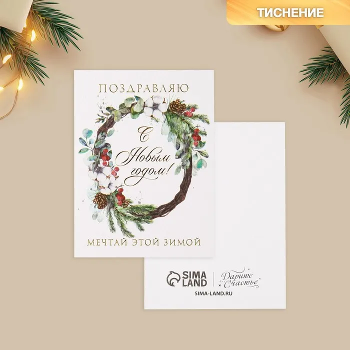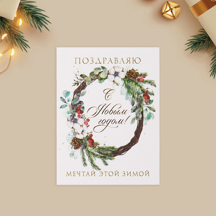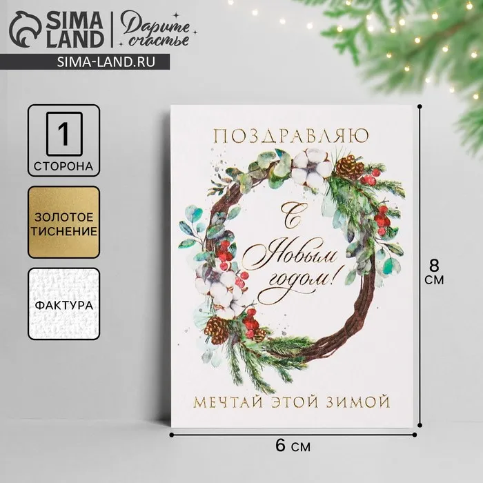 Открытка с новым годом на акварельном картоне «Мечтай этой зимой», 8×6 см — Характеристики