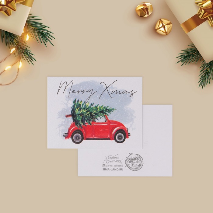 Открытка с новым годом на акварельном картоне «Счастливого рождества», 8 х 6 см