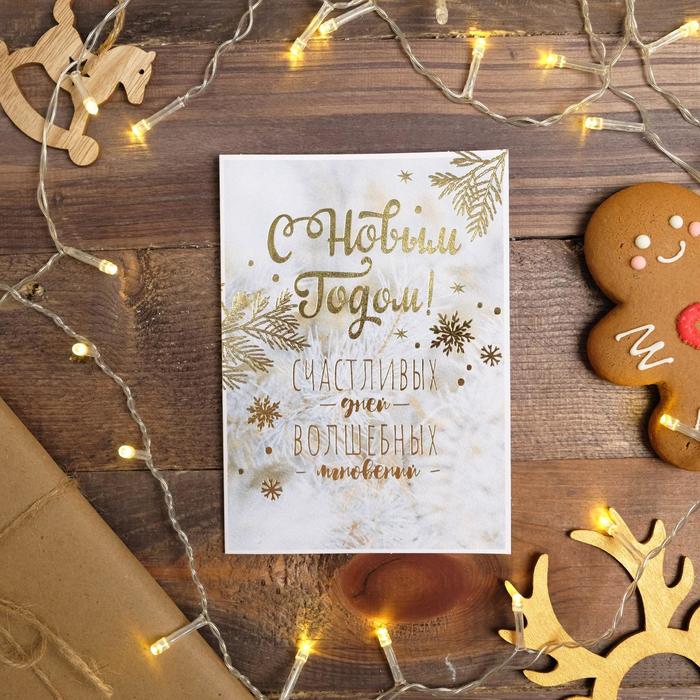 Открытка с новым годом на акварельном картоне «Счастливых дней», тиснение, 11,8 х 16,4 см — Характеристики