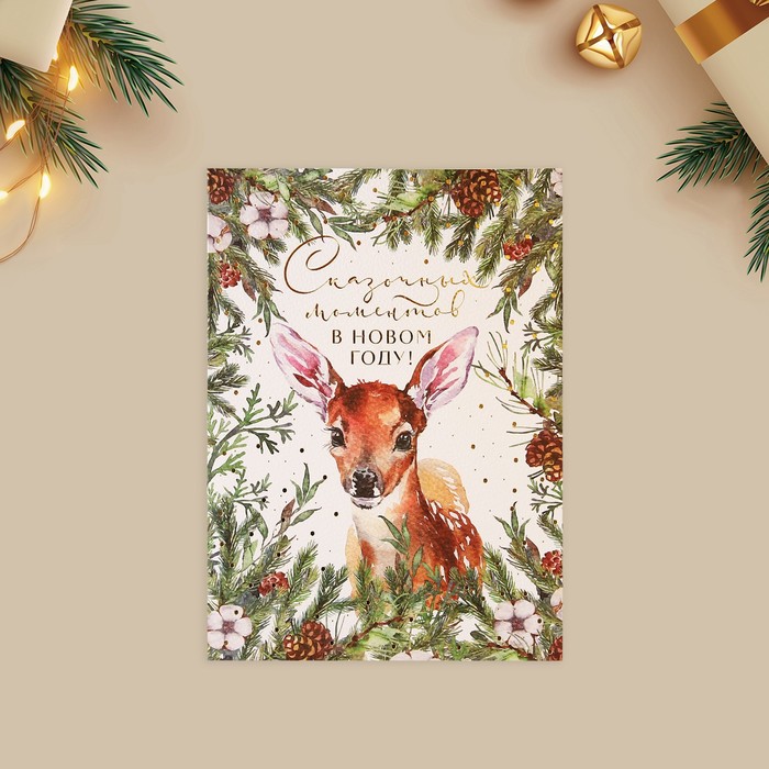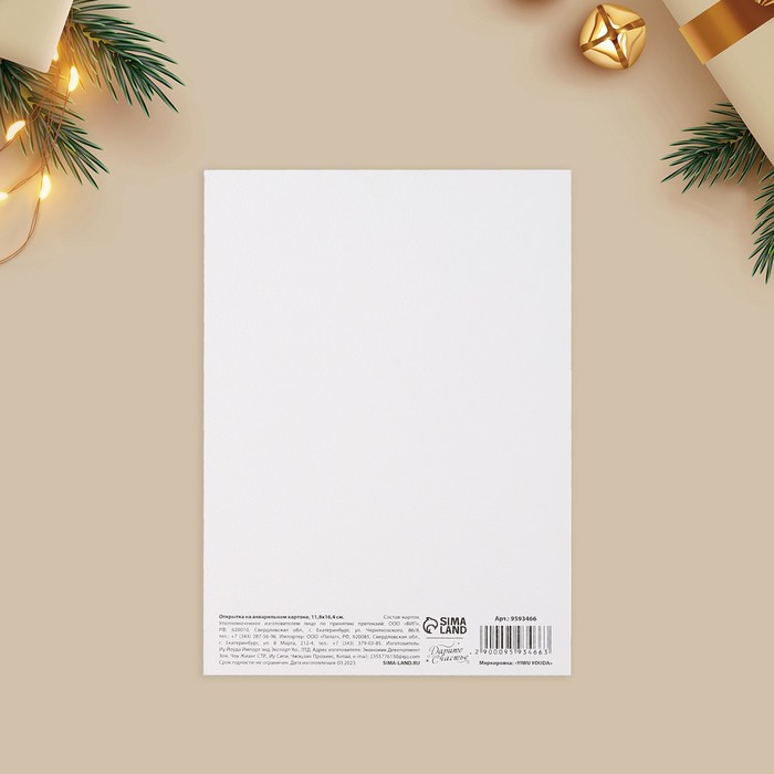 Открытка с новым годом на акварельном картоне «Сказочных моментов», тиснение, 11.8×16.4 см — Характеристики