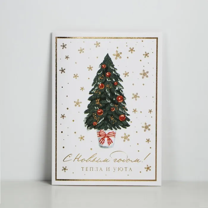 Открытка с Новым годом на акварельном картоне «Тепла и уюта», тиснение, 11.5 х 16 см — Характеристики