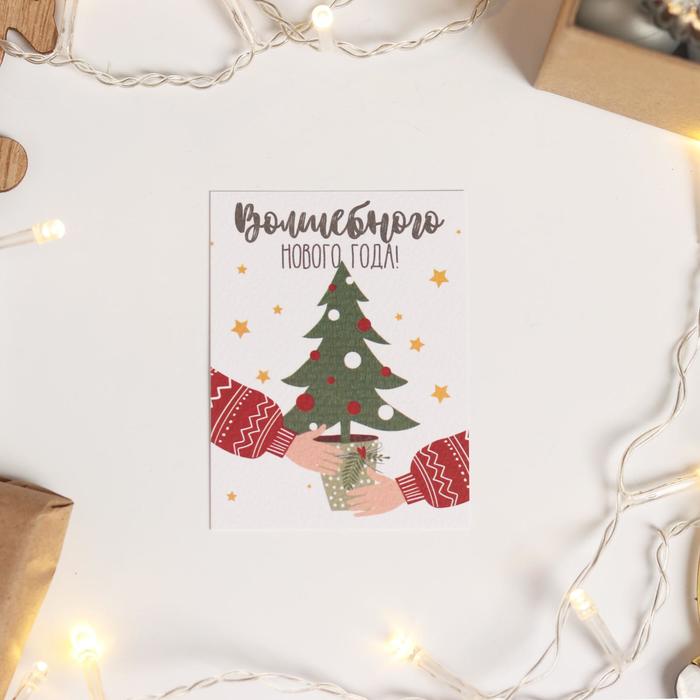 Открытка с новым годом на акварельном картоне «Волшебного Нового Года», 8 х 6 см
