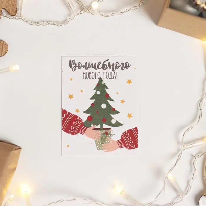 Открытка с новым годом на акварельном картоне «Волшебного Нового Года», 8 х 6 см — Характеристики