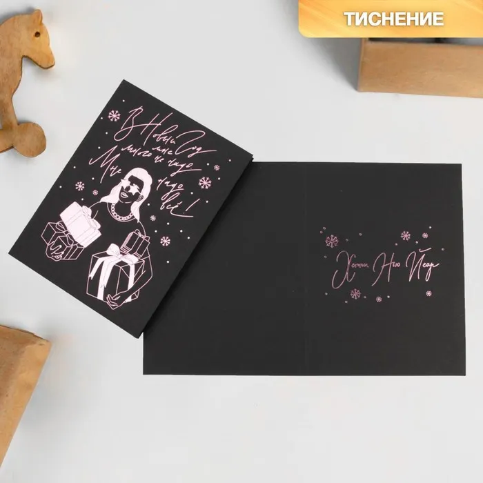 Открытка с новым годом, на черном крафте «Надо все», 12 х 16 см — Характеристики